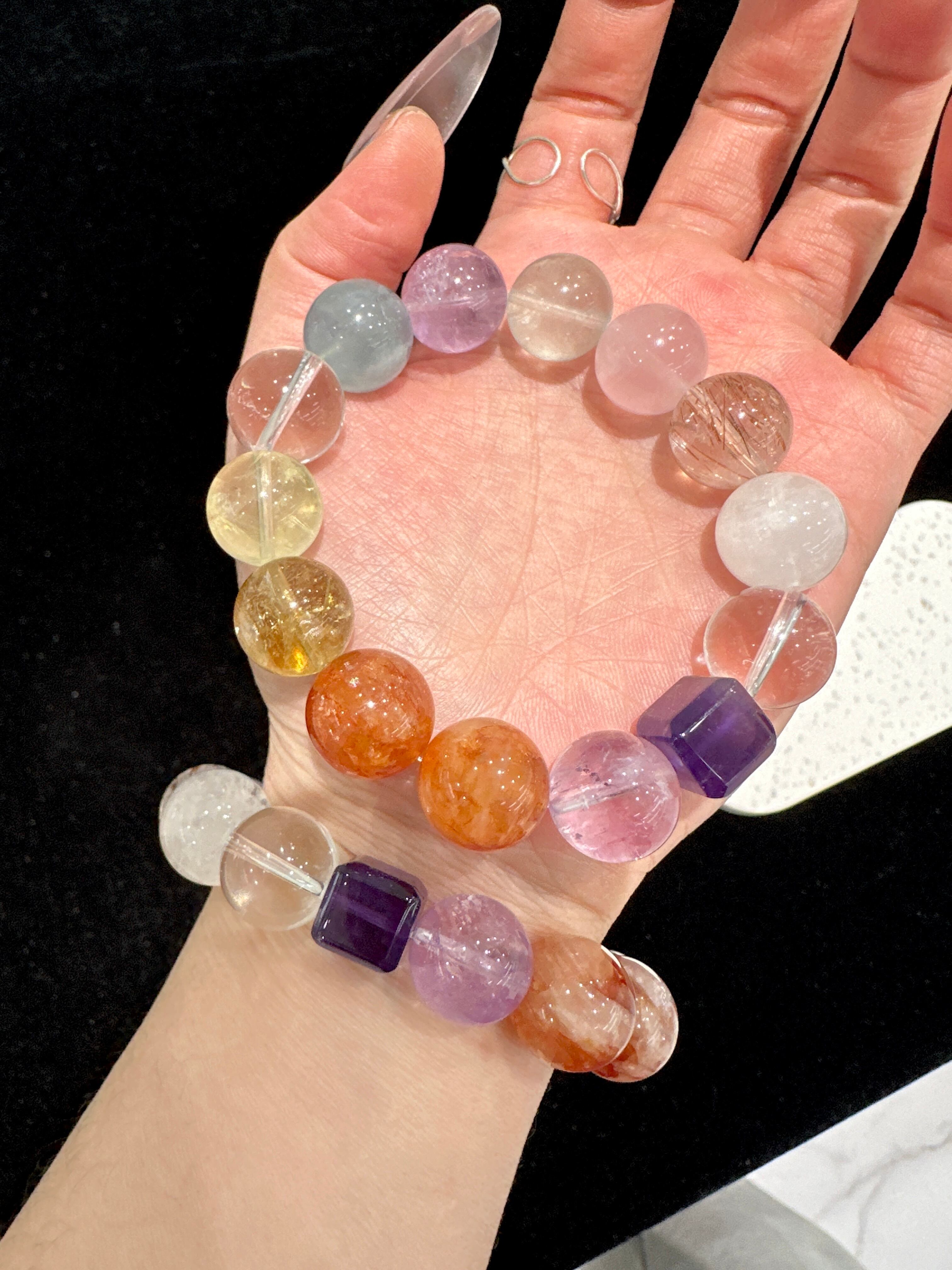 多様な色彩が調和し、一つのエネルギーの核となるように、異なる天然石が互いの魅力を引き立て合う様子を表現しています。