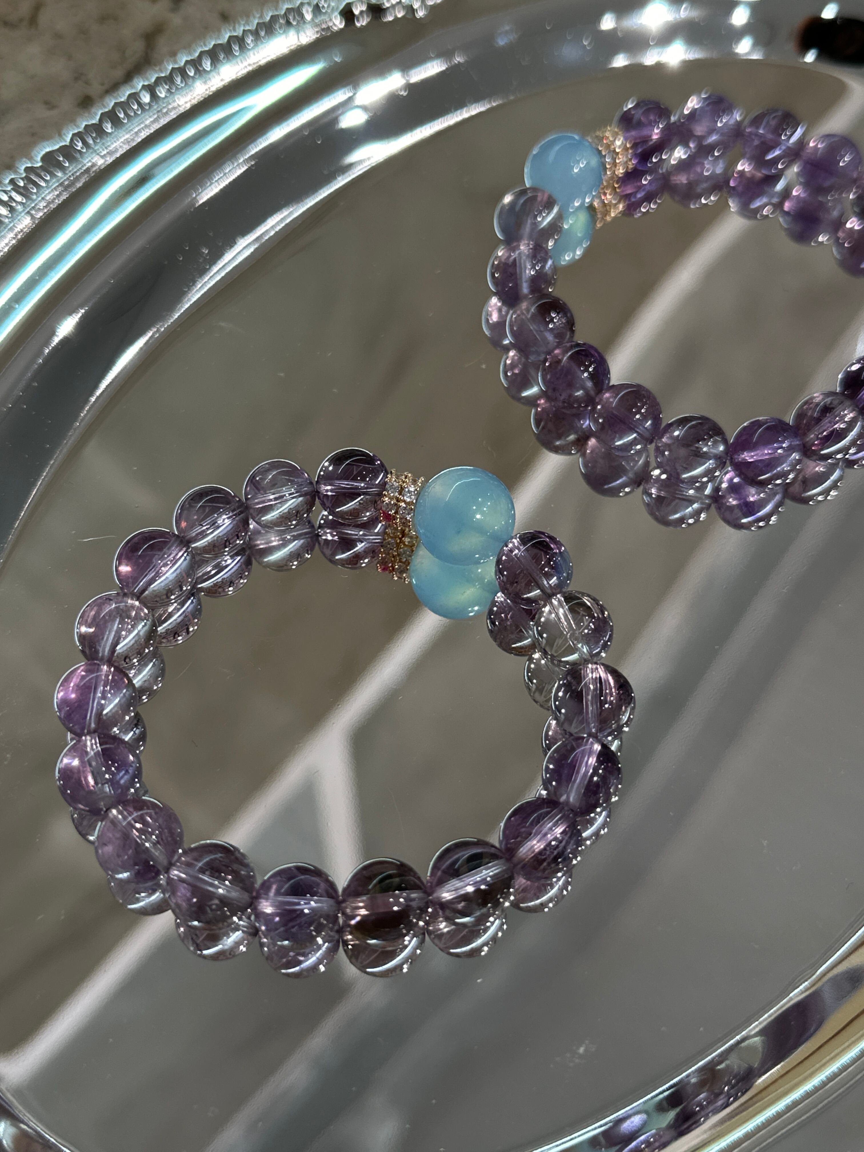 神秘的な紫の石を主役に、清らかな水色のアクセントを配し、