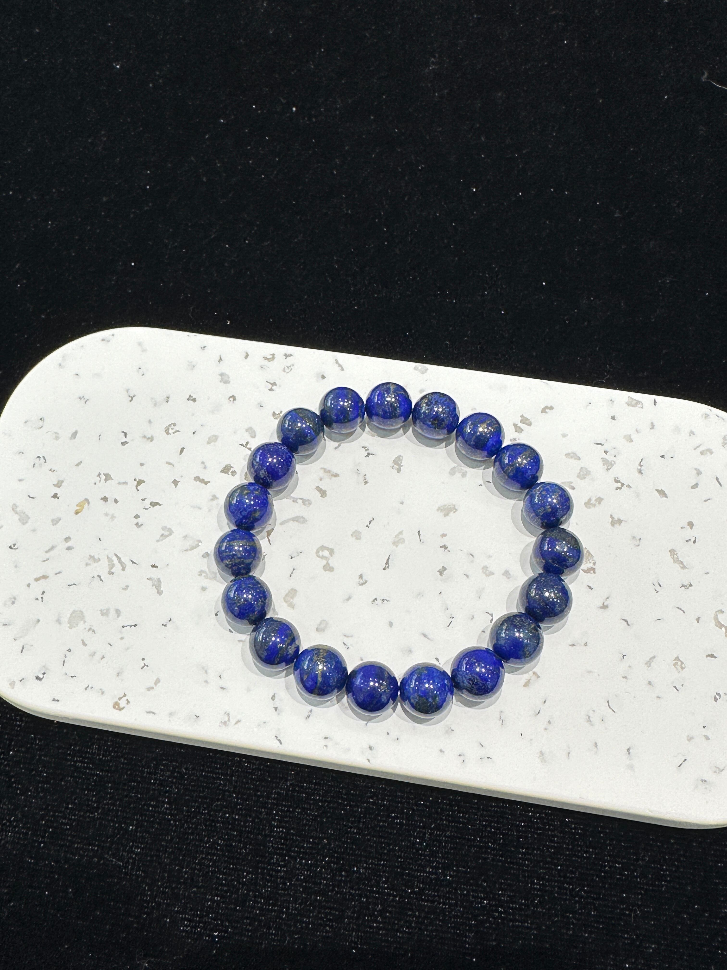 このブレスレットは、** 高品質なラピスラズリ(青金石)** の丸玉を使用したシンプルなデザインです。