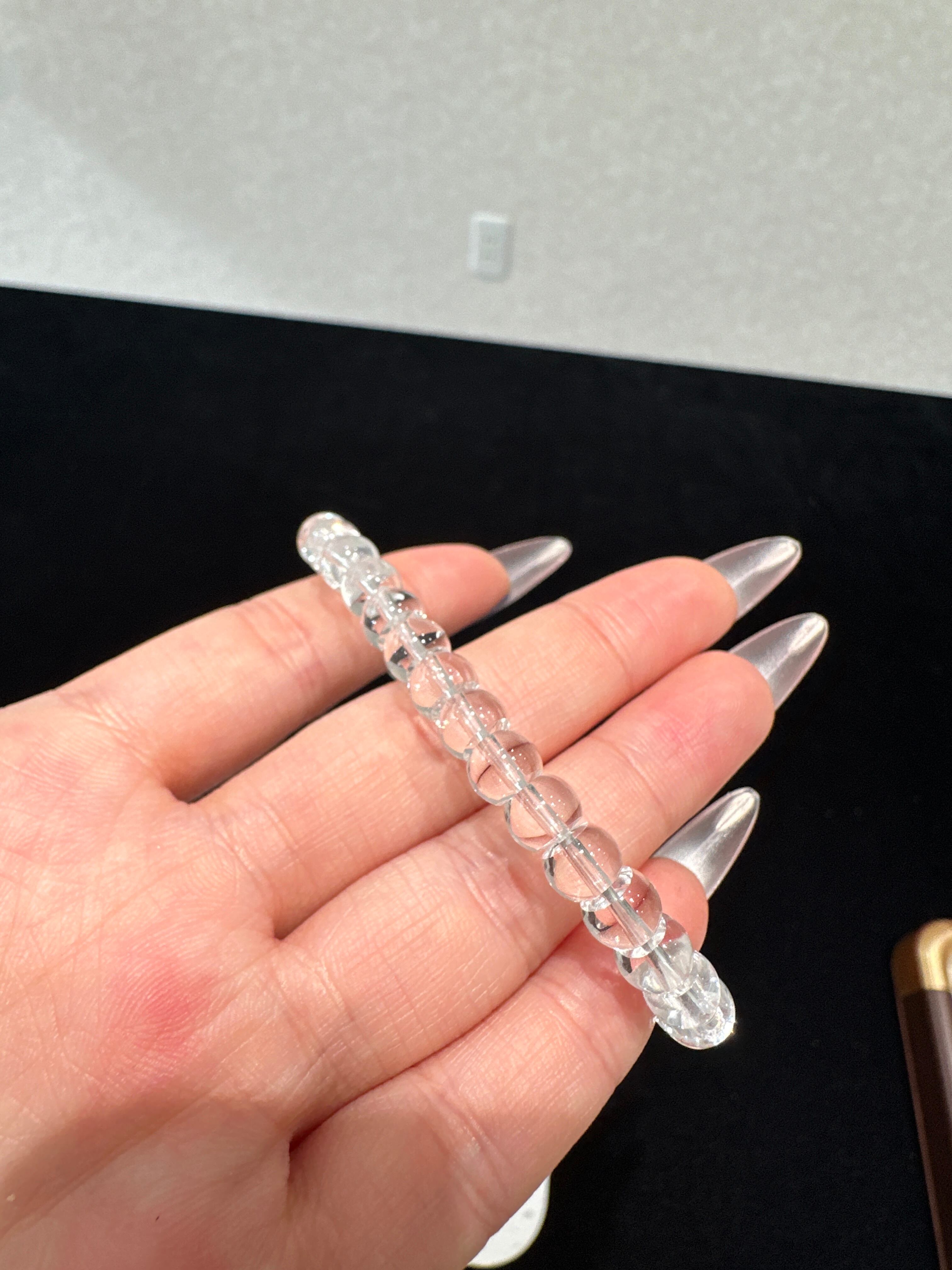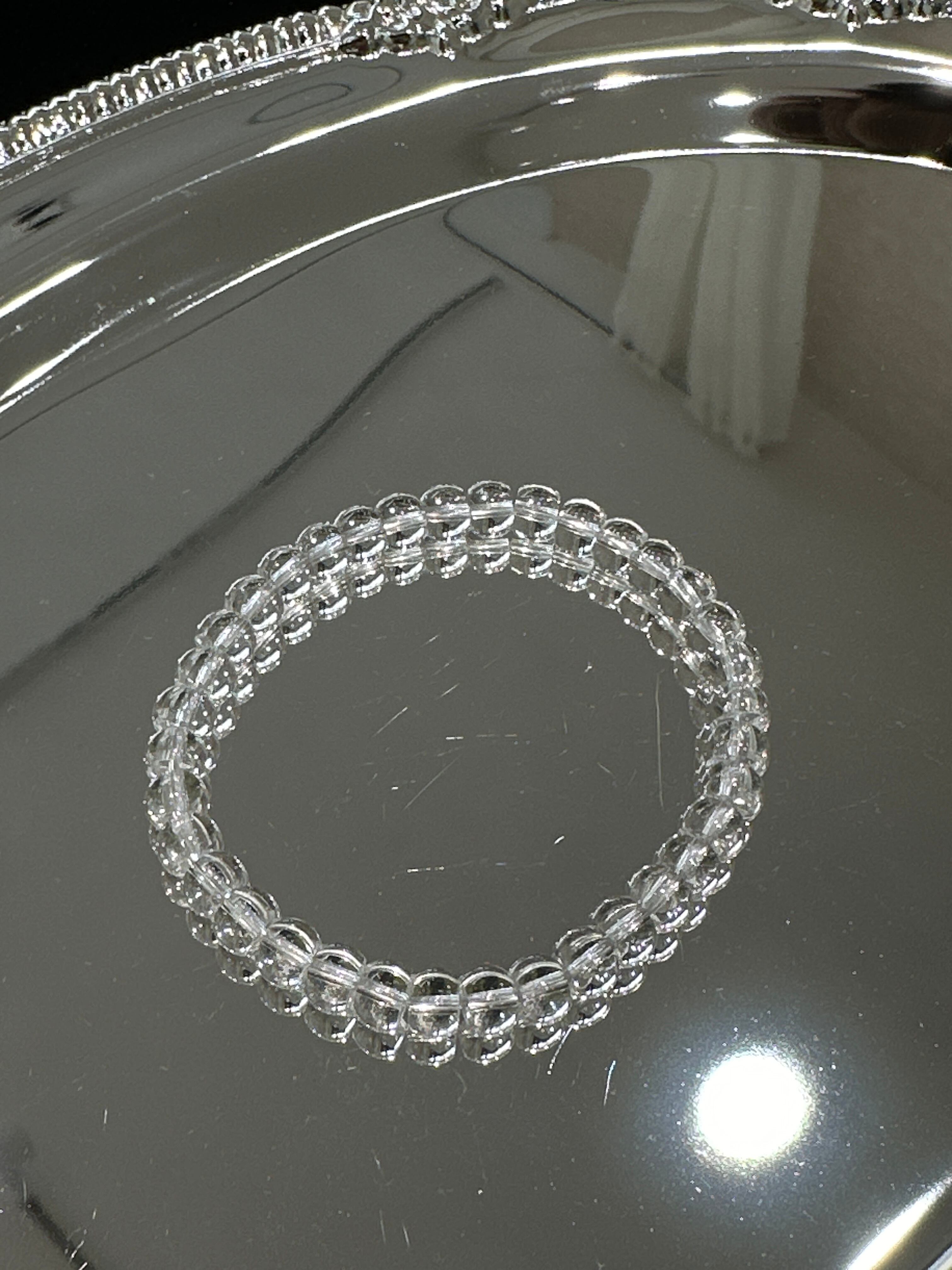 このブレスレットは、** 高品質なクリアクォーツ(白水晶)** の小粒丸玉を使用したシンプルなデザインです。