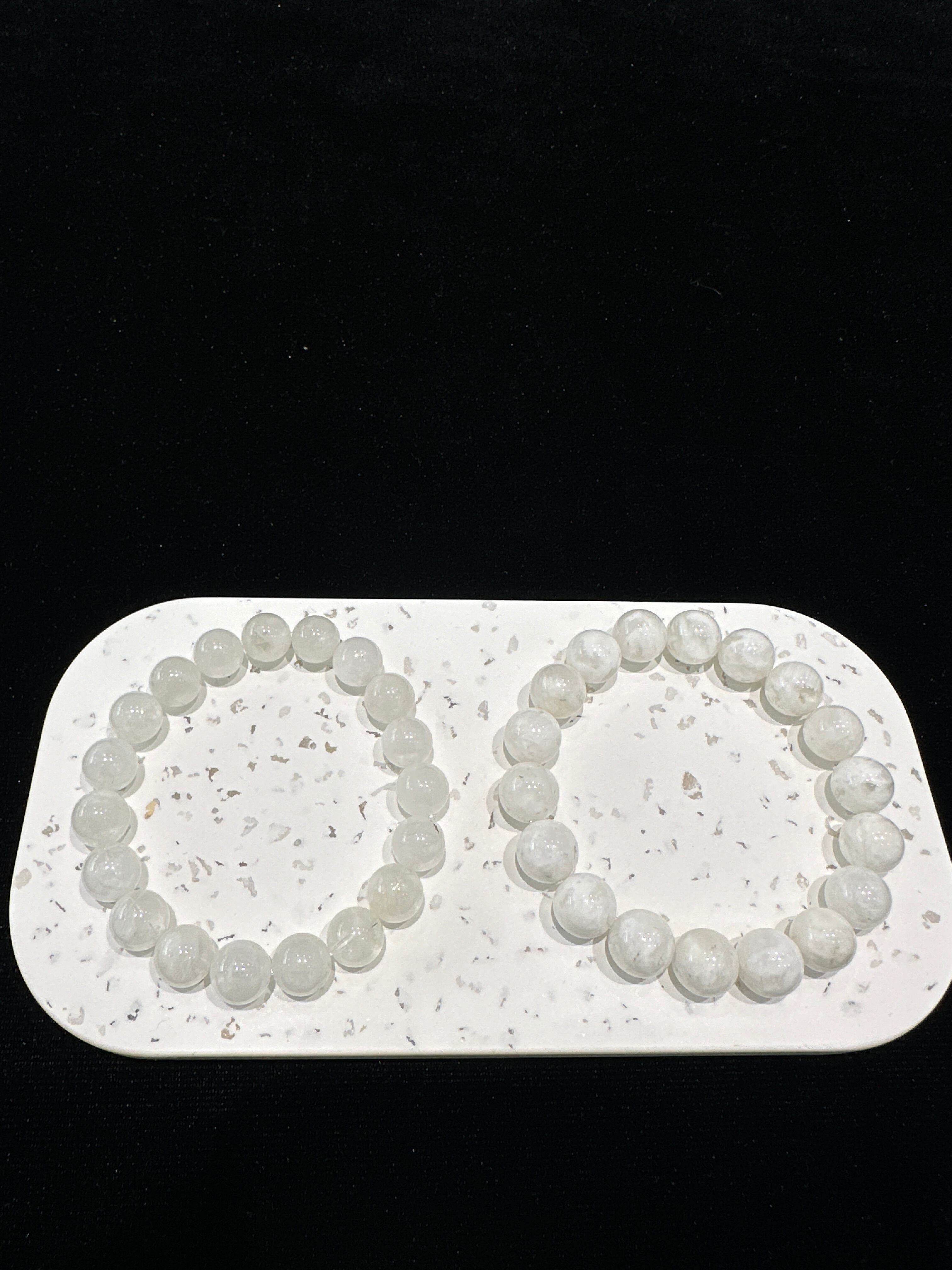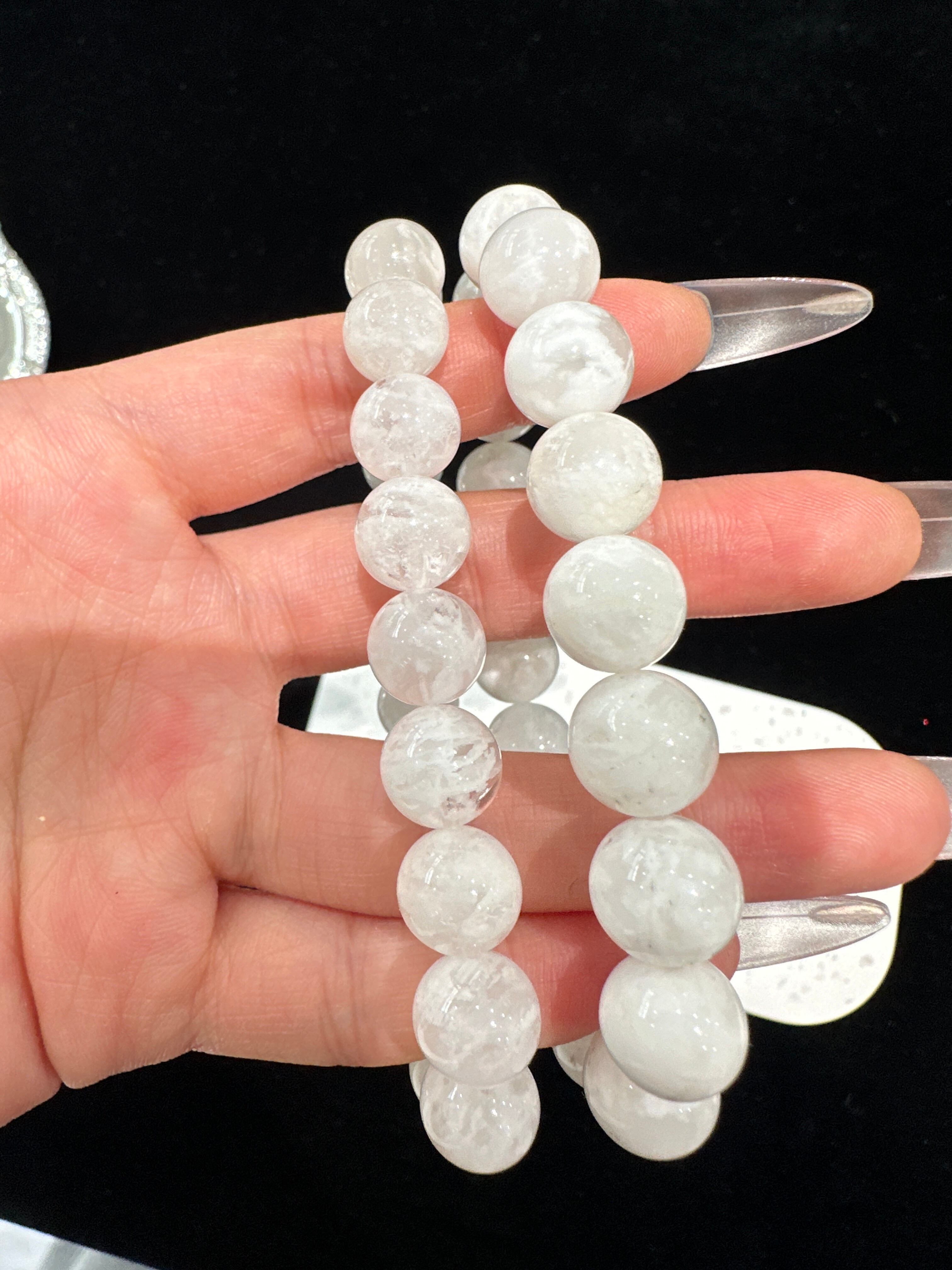 このブレスレットは、** 高品質なホワイトファントムクォーツ(白幻影水晶)** の丸玉を使用したシンプルなデザインです。