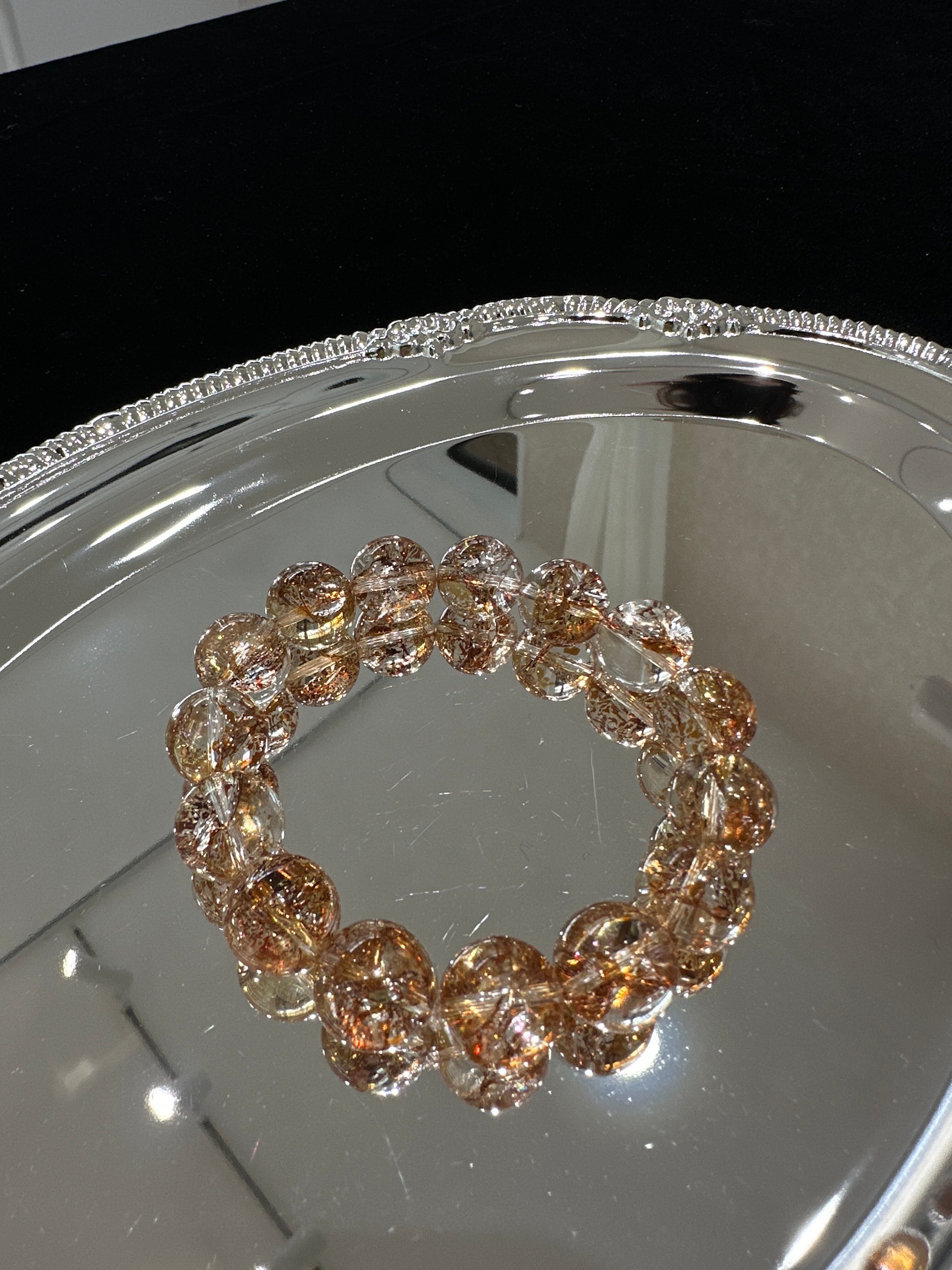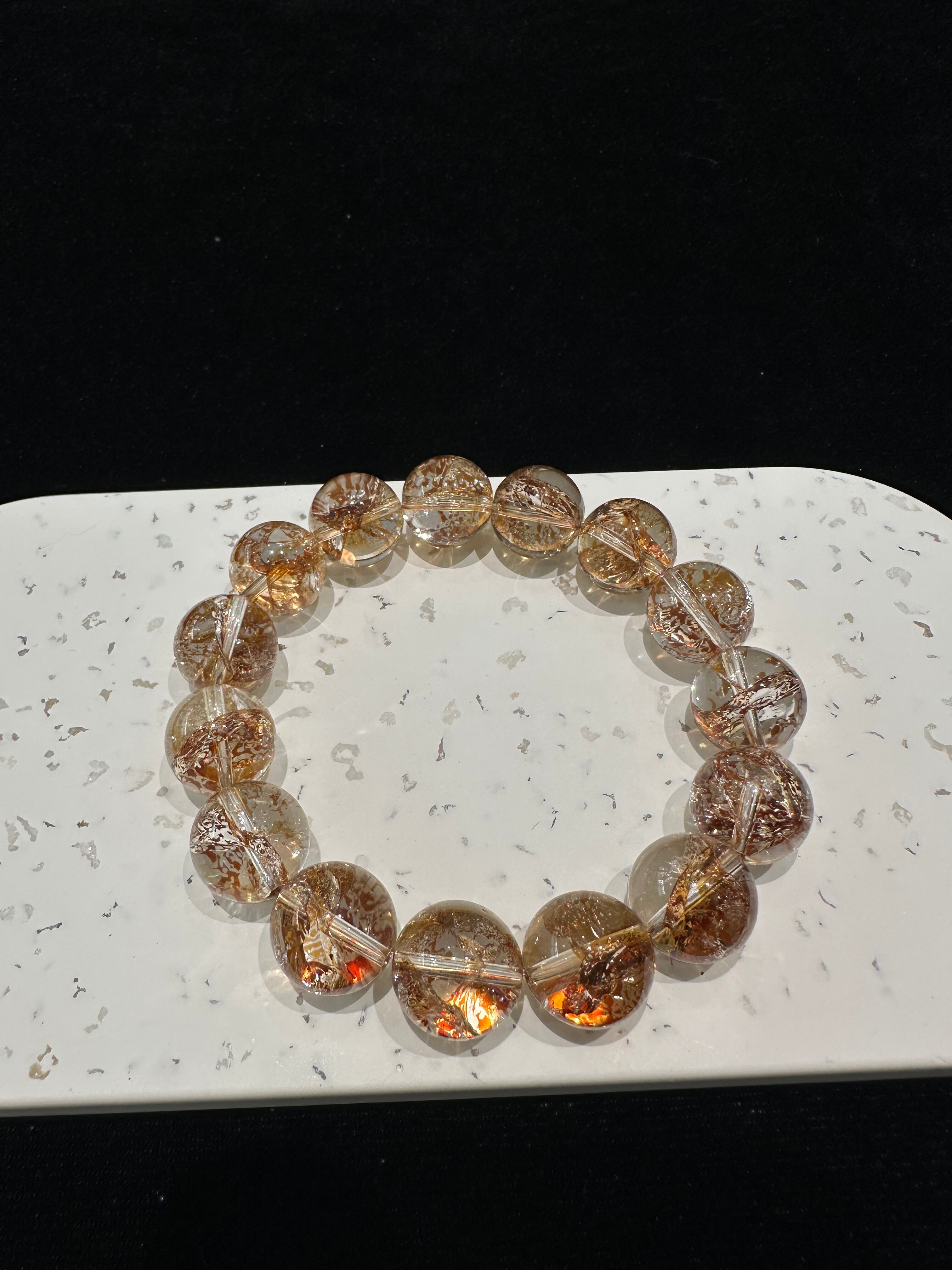 このブレスレットは、** 高品質なゴールドストロベリークォーツ(金草莓晶)** の丸玉を使用したシンプルなデザインです。