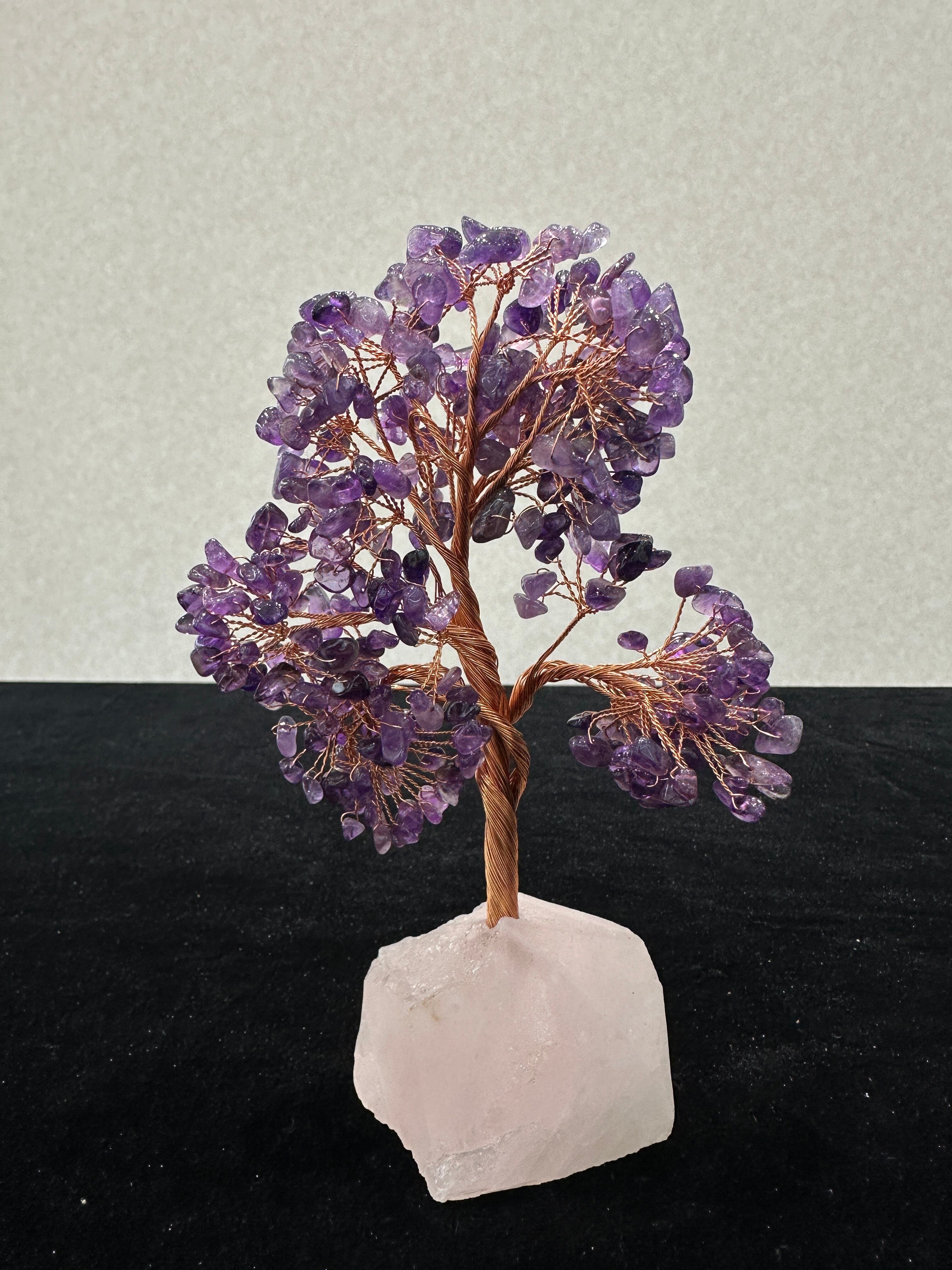 素材:アメジスト(葉)、ローズクォーツ(台座)、銅線(枝幹)