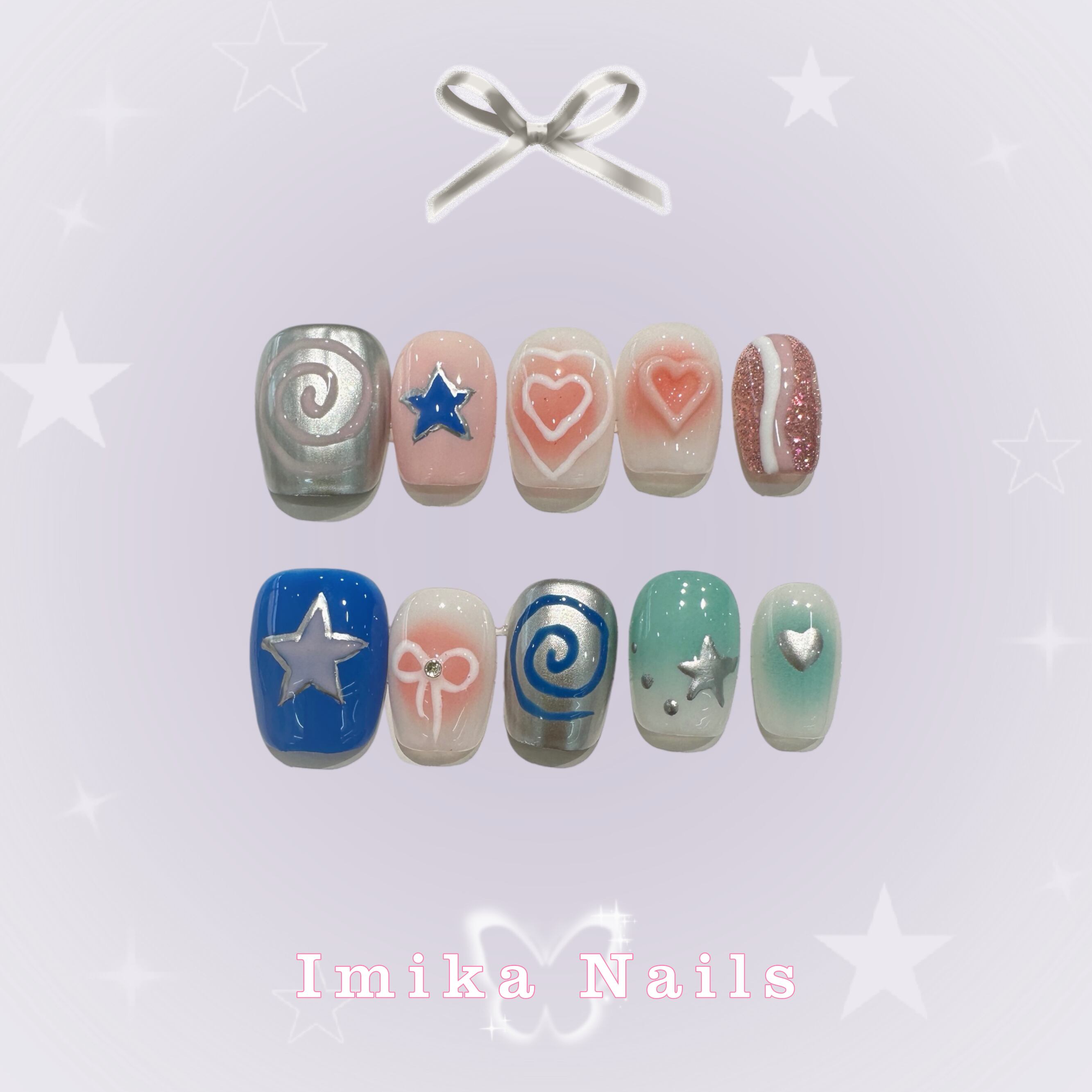 MJ-164ブルーピンクスターハート・カラーコントラスト キュートクールネイル