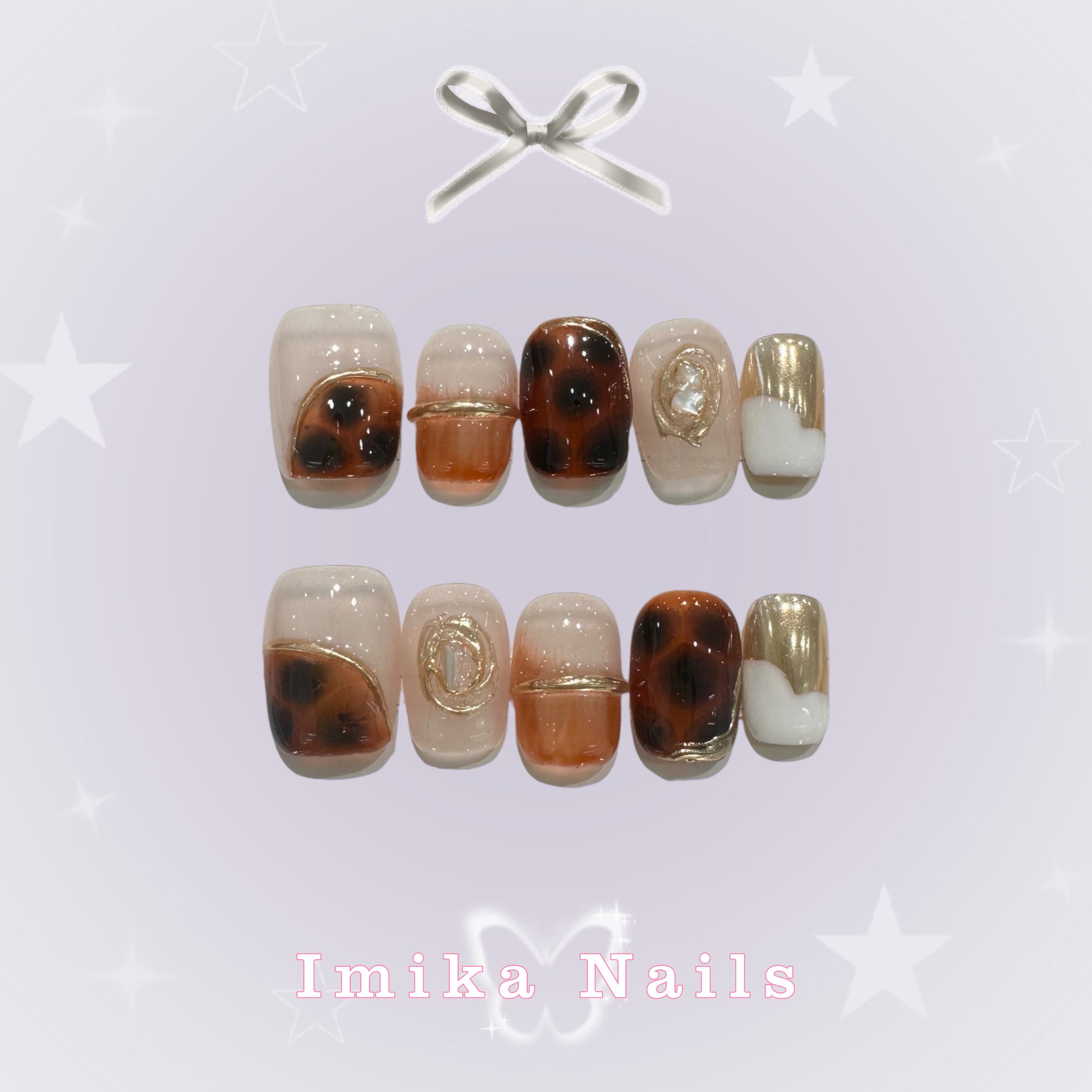 MJ-122アンバーべっ甲・ブラウンゴールド レトロネイル