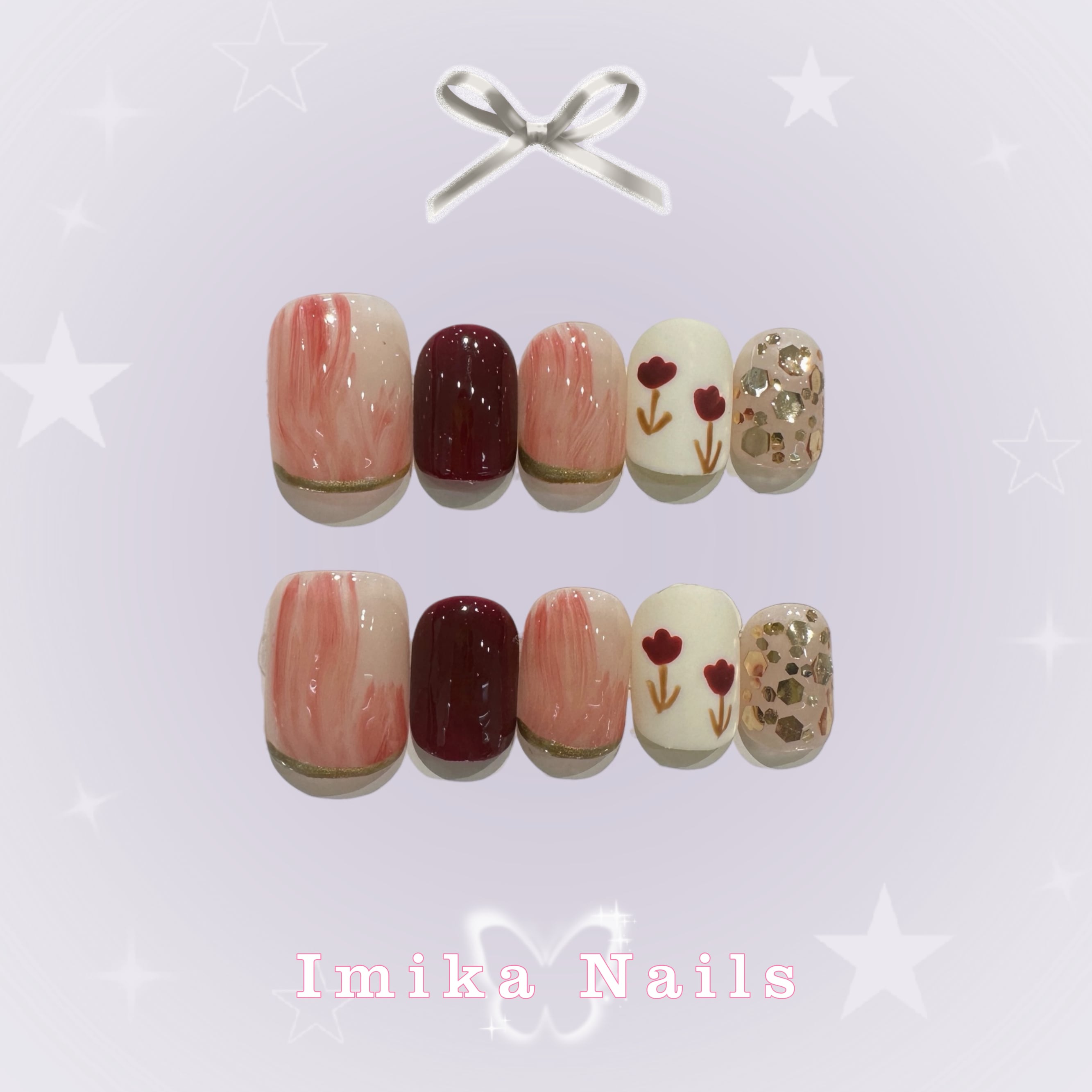 MJ-128ピンクチューリップ・ピンクブラウン やさしいネイル