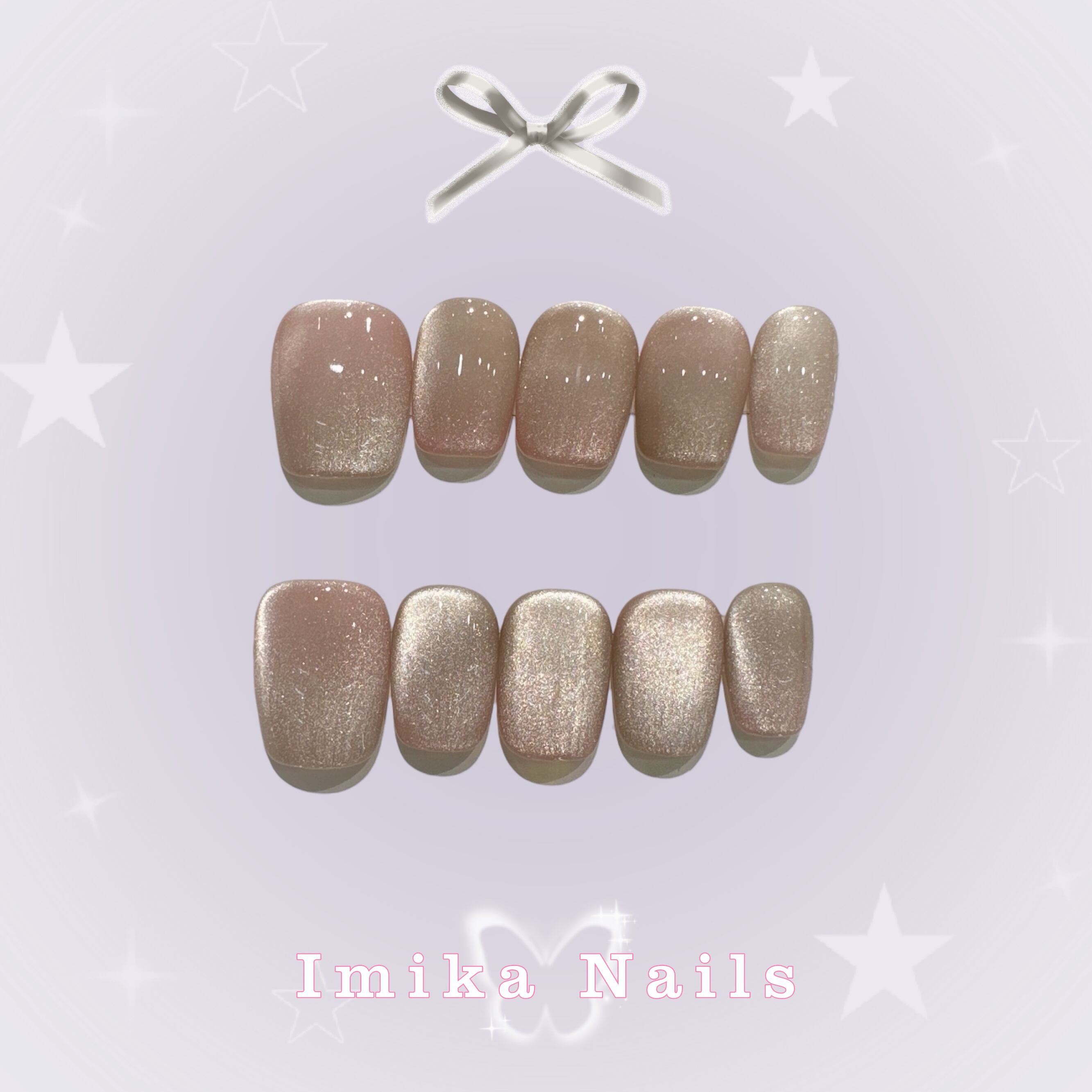 ピンクゴールドのキャッツアイグラデーションをアクセント。優しく高級感あふれる雰囲気を纏い、XS/S/M サイズ対応で通勤やデートに最適です。
