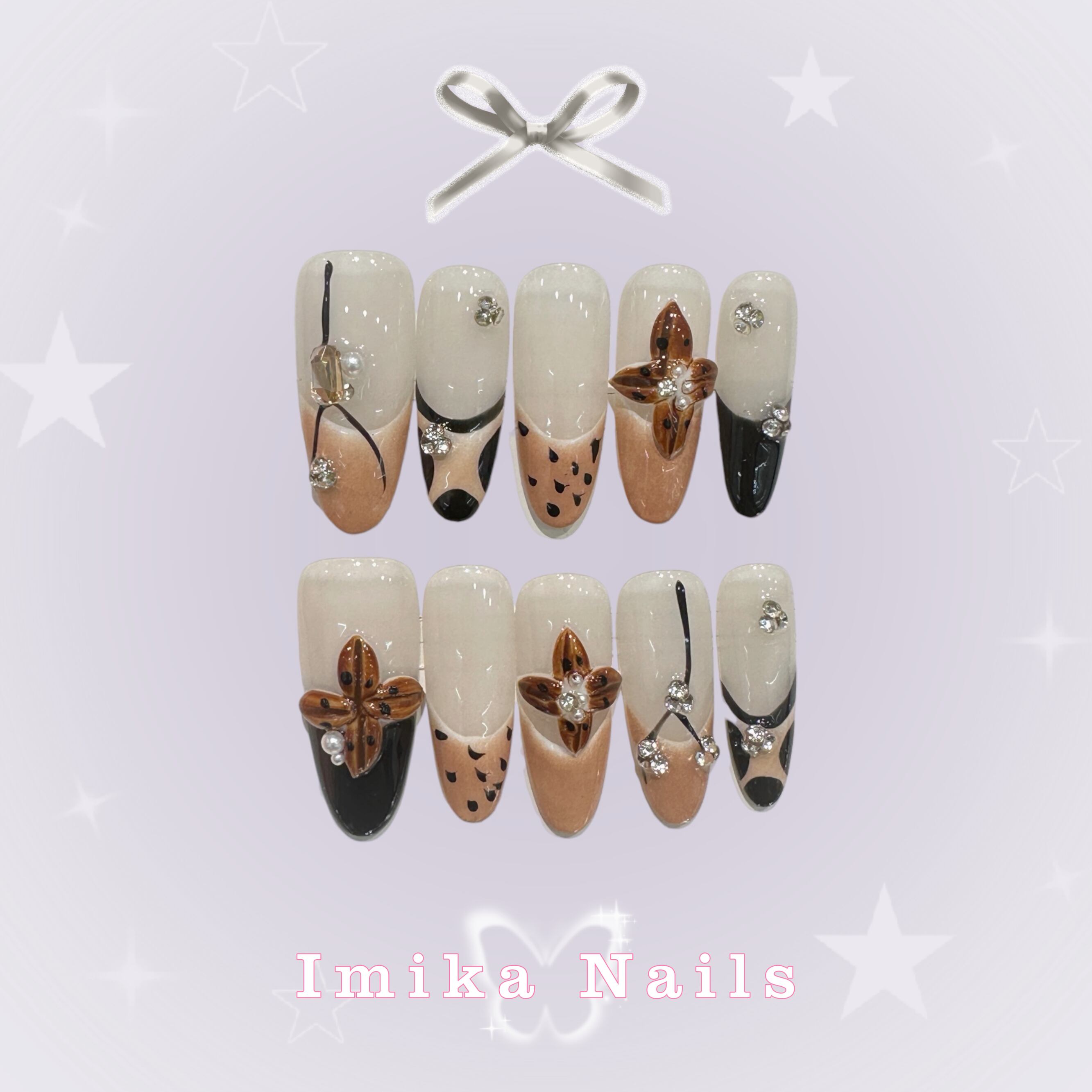 MJ-002レオパード花・ベージュブラウン クールネイル
