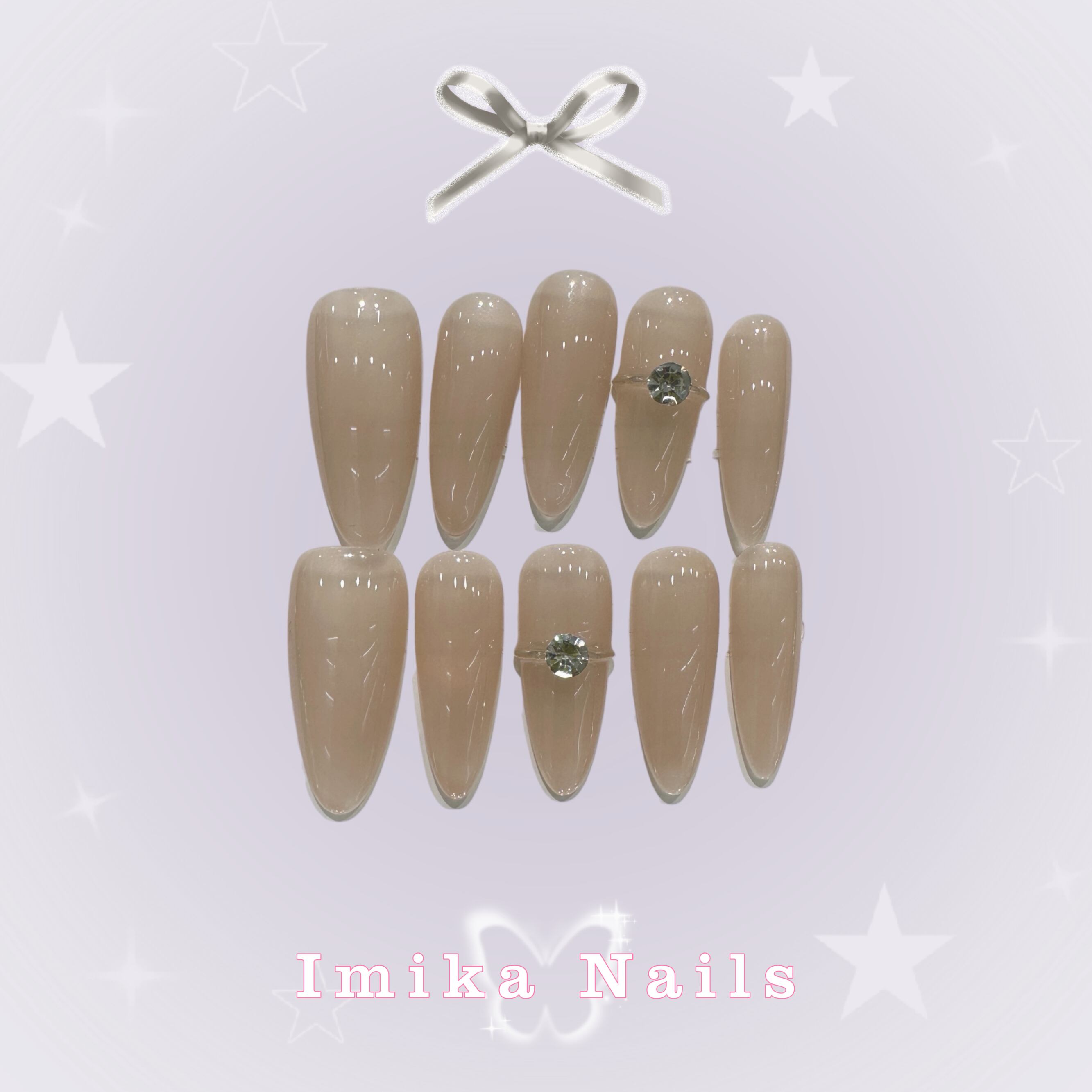 ヌードピンクのグラデーションをベースに、1 つの小さなストーンをアクセント。シンプルで高級感あふれる雰囲気を纏い、XS/S/M サイズ対応で日常通勤に最適です。