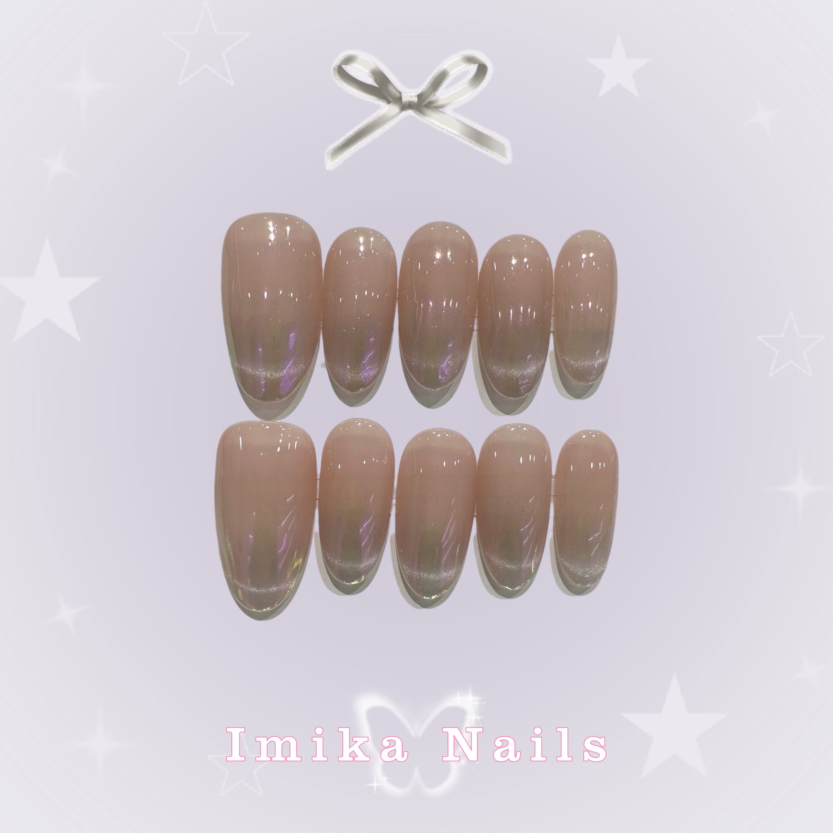 ピンクの透過グラデーションをベースに、オーロララメをアクセント。清涼感と仙気を併せ持ち、XS/S/M サイズ対応で多くの方にフィットします。